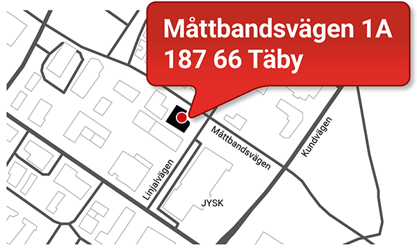 Nya adressen i Arninge är Måttbandsvägen 1A, 187 66 Täby.