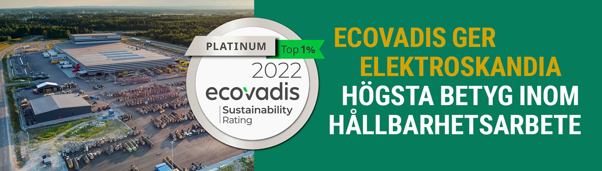 - För att få ett kvitto på vårt arbete och samtidigt se vad vi kan förbättra för framtiden, anlitar vi sedan några år tillbaka det oberoende analysföretaget Ecovadis. Deras bedömning av företag sker inom fyra områden: miljö, rättvisa och arbetsförhållanden, etik samt hållbara inköp. De hållbarhetsbetyg som Ecovadis delar ut är i nivåerna brons, silver, guld samt platina. Platina når endast 1 procent av alla rankade företag. Sedan vi började samarbetet har vi gradvis kunna höja vårt betyg för att nu nått upp till högsta nivå, platina. Vi är givetvis mycket stolta och glada över utmärkelsen, som är ett bevis på att vi är på rätt väg och som också sporrar oss i vårt fortsatta hållbarhetsarbete, säger Karen Kruger, ansvarig för hållbarhet på Elektroskandia Sverige AB.