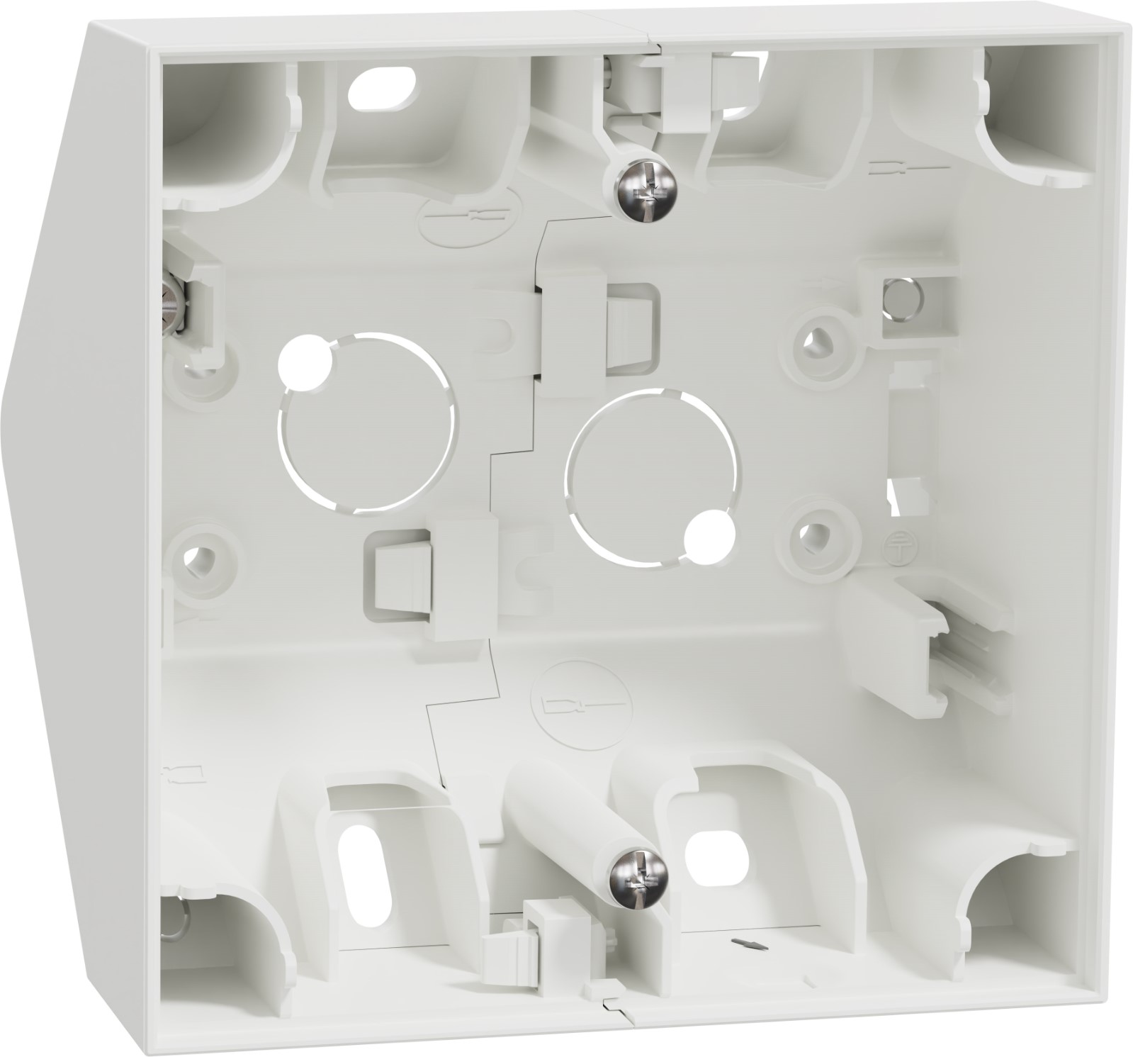 Med möjligheten att enkelt monteras direkt på väggen eller ovanför en infälld dosa, och med möjlighet att anpassa till produkter med 1½ cirkulär c-platta i ELKO One-serien, möjliggör denna hörnbox skapande av enhetliga och moderna installationer.