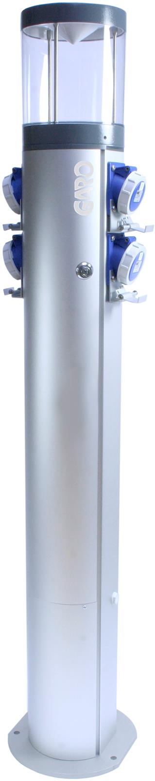 Kosterstolpen finns i flera olika utföranden. Du kan välja en ren belysningsstolpe eller anpassa stolpen med önskat antal uttag efter behov. Samtliga uttag är utrustade med låsfunktion för att förhindra obehörig användning.