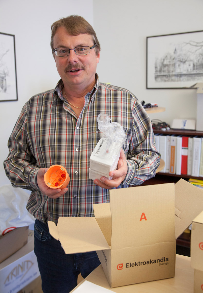 Den första leveransen från Elektroskandias nya logistikcenter gick till PoB:s Elektriska AB i Uppsala. Där tog vd, Anders Eriksson emot artiklar från Elko som var årets leverantör hos Elektroskandia.