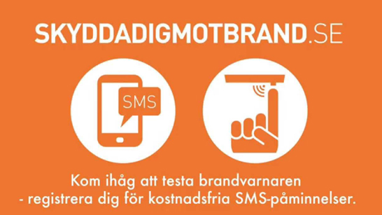 Kom ihåg att testa dina brandvarnare. Om du vill ha hjälp med det så finns en sms-tjänst som hjälper till att påminna om att testa brandvarnaren. Gå in på www.skyddadigmotbrand.se. Skriv ditt eget eller någon annans mobilnummer. Då får mottagaren en påminnelse om att testa brandvarnaren via sms.